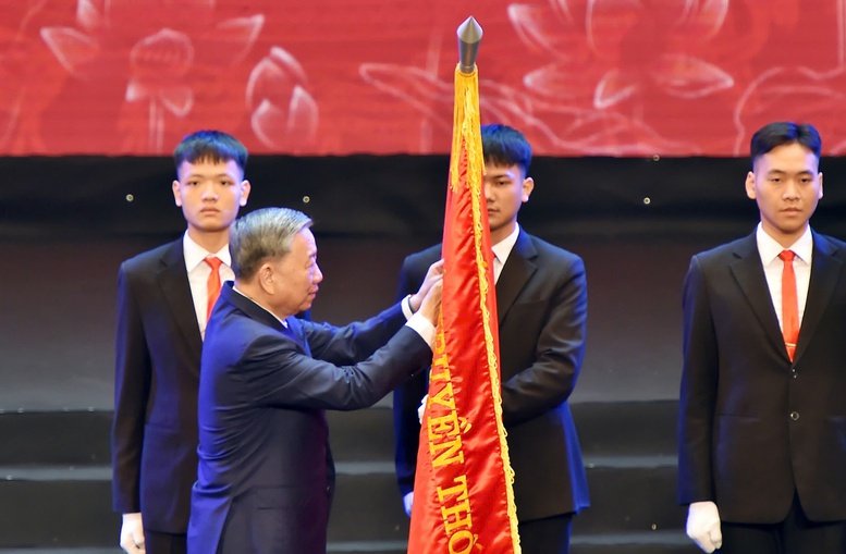 Tại buổi lễ, Tổng Bí thư Tô Lâm đã trao tặng Huân chương Lao động hạng Ba cho Trường Đại học Kinh tế (Đại học Quốc gia Hà Nội).